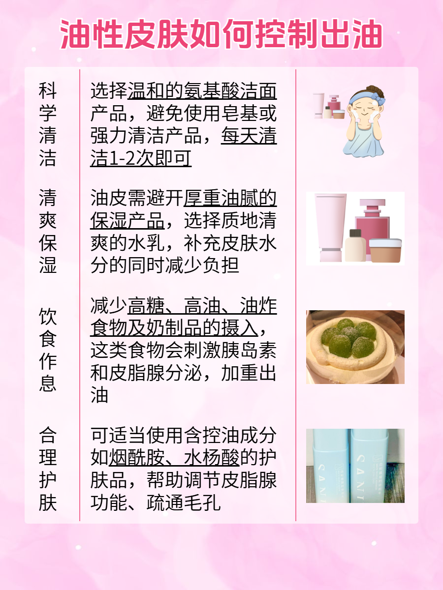 ??小貼士:日常做好防曬,紫外線會刺激皮膚出油;飲食上減少高糖、高油食物攝入,規律作息避免熬夜,這些都會影響油脂分泌狀態。