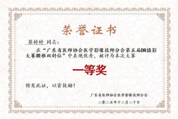 蔡婷婷獲得DR攝影大賽一等獎