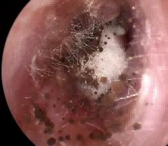 患者為一名28歲的女性,有3年中耳炎病史,但已干耳(無流膿)3年?;颊咦允龆W,自行掏耳無效后,使用了家中與修剪指甲共用的指甲刀/掏耳勺進行清理?;颊弑旧碛惺职_、腳癬。