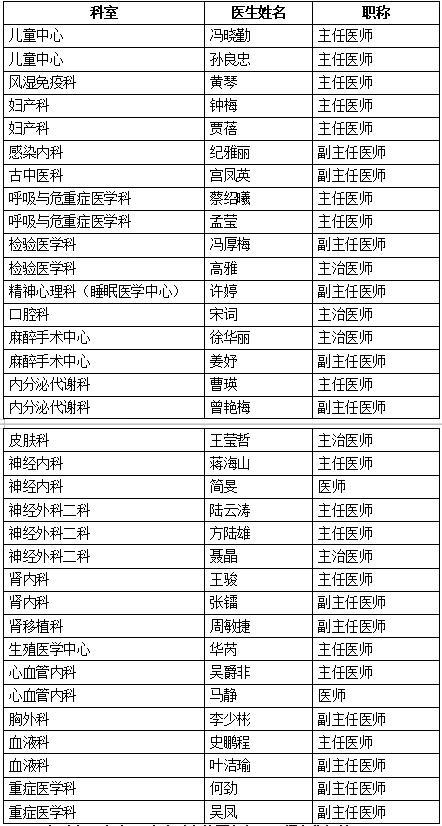 神經內科、風濕免疫科、血液科、內分泌科、神經外科、心血管內科、呼吸與危重癥醫學科、消化內科、兒童中心、生殖醫學中心、腎內科、皮膚科、婦產科、口腔科、古中醫科……