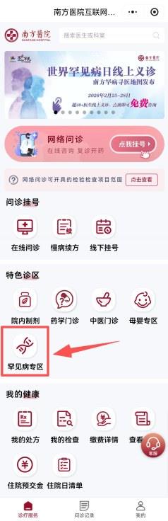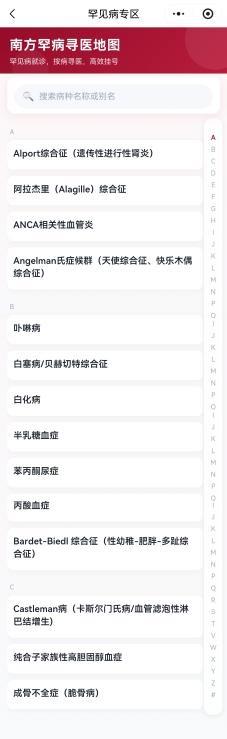 平臺:南方醫院互聯網醫院——罕見病專區