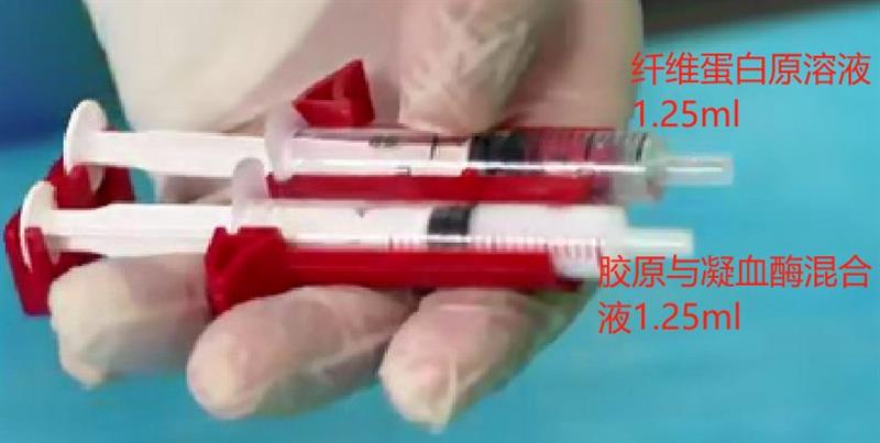 第二步為干燥創面+注射支架,對創面進行干燥處理以提升支架貼合度,隨后將雙針結構的膠原水凝膠精準注入缺損區,其可在15分鐘內快速固化,完美貼合缺損形態,為細胞再生搭建“生長溫床”。后續,細胞會在支架上黏附、增殖、分化,逐漸形成新的透明軟骨,讓關節面恢復平整,修復軟骨功能。