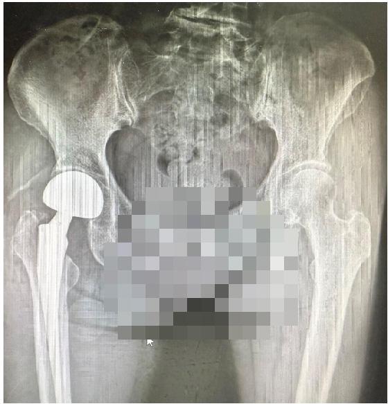 手術(shù)當(dāng)天,麻醉手術(shù)中心劉衛(wèi)鋒副主任團隊實施精準(zhǔn)神經(jīng)阻滯麻醉聯(lián)合鎮(zhèn)靜鎮(zhèn)痛,全程保留患者意識及自主呼吸。胡稷杰主任醫(yī)師與李凱群主治醫(yī)師合作,經(jīng)髖關(guān)節(jié)前方DAA入路,順利完成股骨頭取出與假體置入。