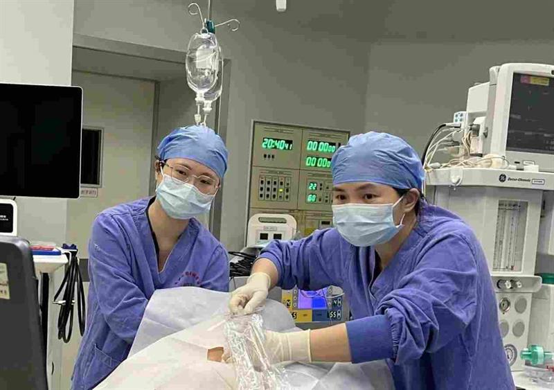 方案確定后,首個技術難關接踵而至:傳統ECMO置管需患者鎮靜插管、平臥配合,但小李因氣管嚴重受壓,只能端坐呼吸,一旦使用鎮靜藥物,可能因呼吸肌無力立即死亡。